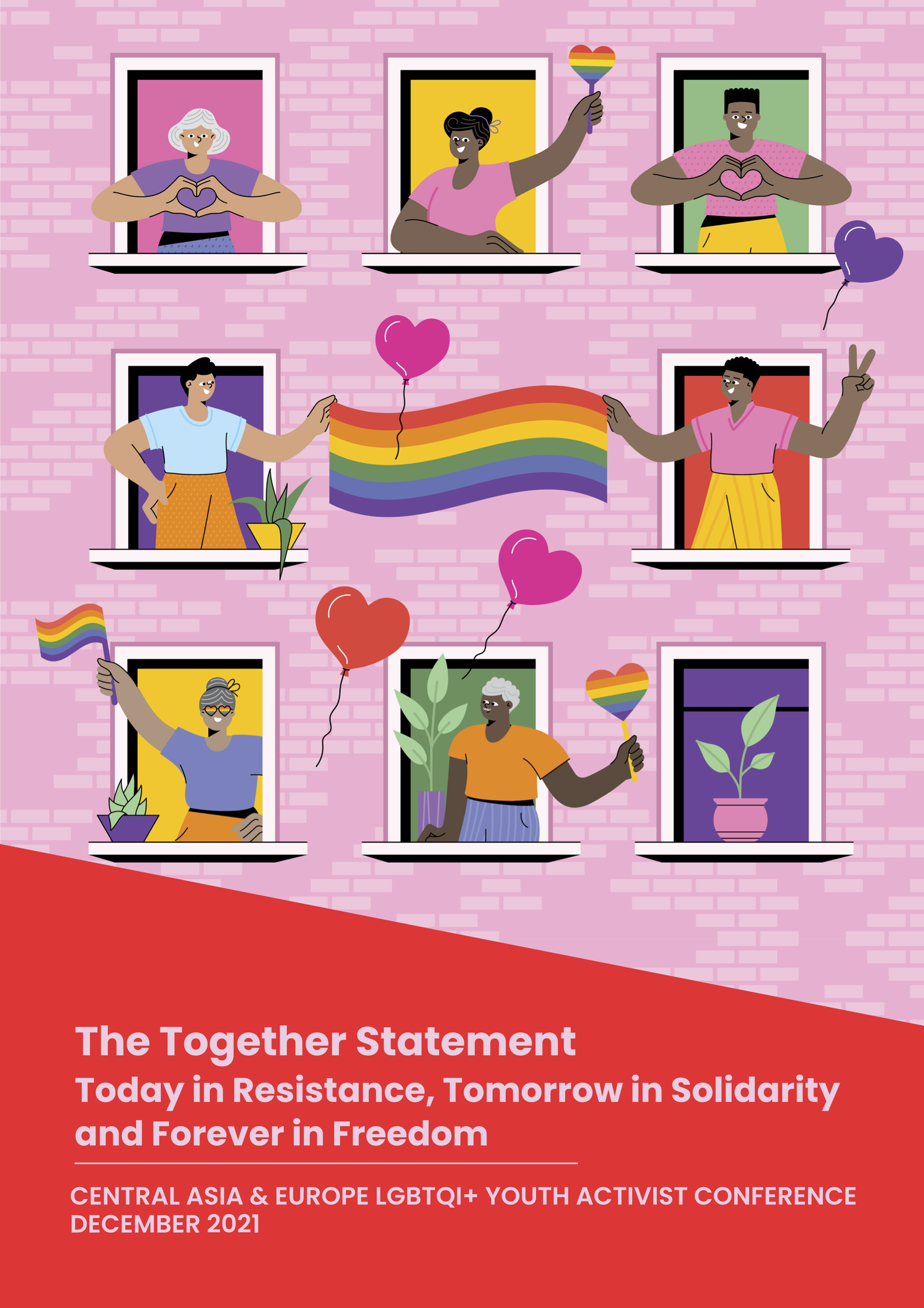 The Together Statement is a democratically-formed collective statement created by LGBTQI+ youth activists and organisations around the world. This first statement was formed at The Together Conference in December 2021, focusing on the Central Asia and Europe region. It details the greatest problems, solutions, and recommendations facing LGBTQI+ youth today in the five key areas of education, employment, health, housing, and political participation.